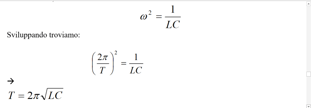 Se siamo nelle condizioni di scarica oscillatoria, cioè , le oscillazioni avranno un periodo dato dalla formula di Thomson (che ora dimostreremo):