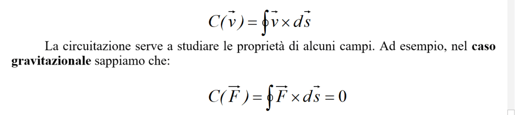 La circuitazione serve a studiare le proprietà di alcuni campi. Ad esempio, nel caso gravitazionale sappiamo che: