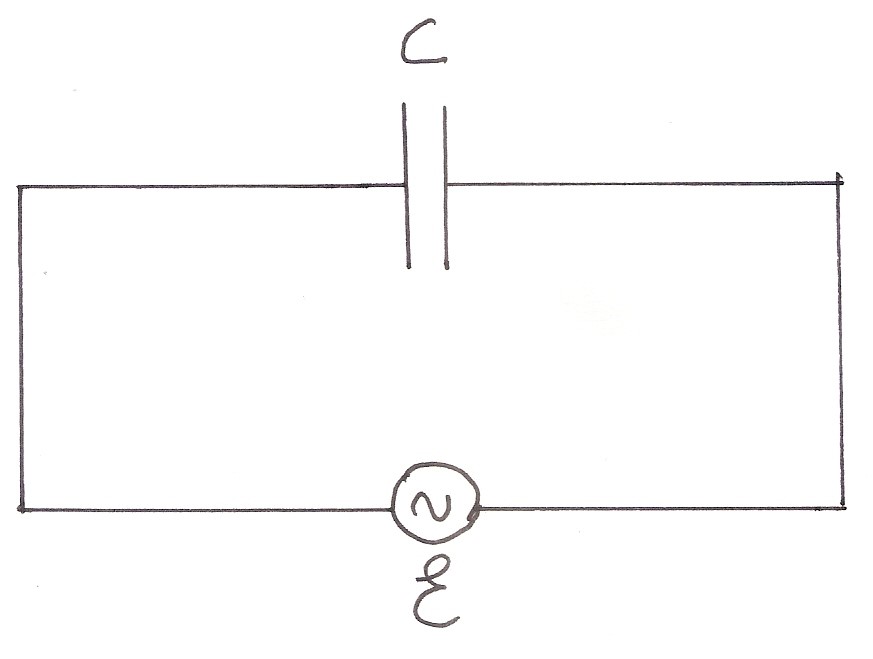 Anche qui valgono le considerazioni sulla resistenza, fatte nel caso precedente. Considereremo quindi R = 0 (ricordo che in cc il condensatore non fa passare corrente e si comporta quindi come se R = ∞) ed E = E0 sen ωt.