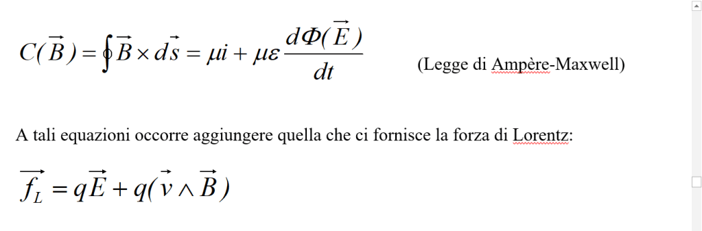 A tali equazioni occorre aggiungere quella che ci fornisce la forza di Lorentz: