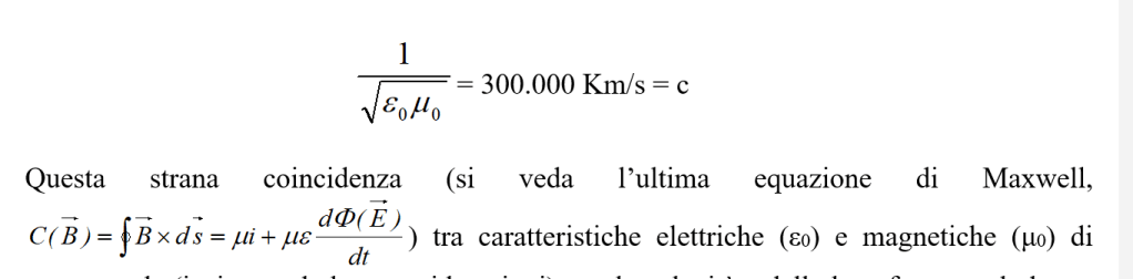 Secondo i conti di Maxwell le o.e.m. avrebbero dovuto avere nel vuoto una velocità data da: