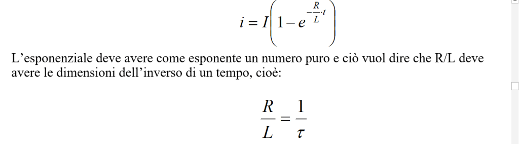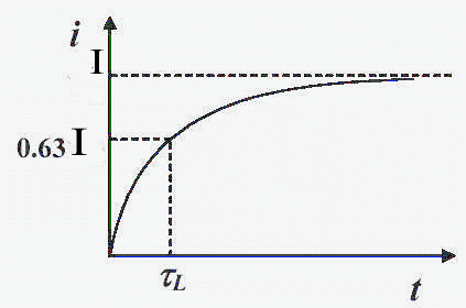 Quindi la costante di tempo τL rappresenta il tempo necessario affinché la corrente nel circuito raggiunga un valore pari al 63 % del valore finale di equilibrio I. Poiché la differenza di potenziale VA – VB ai capi della resistenza è proporzionale alla corrente i, la dipendenza dal tempo della corrente in aumento ha la stesso andamento di VA – VB.
