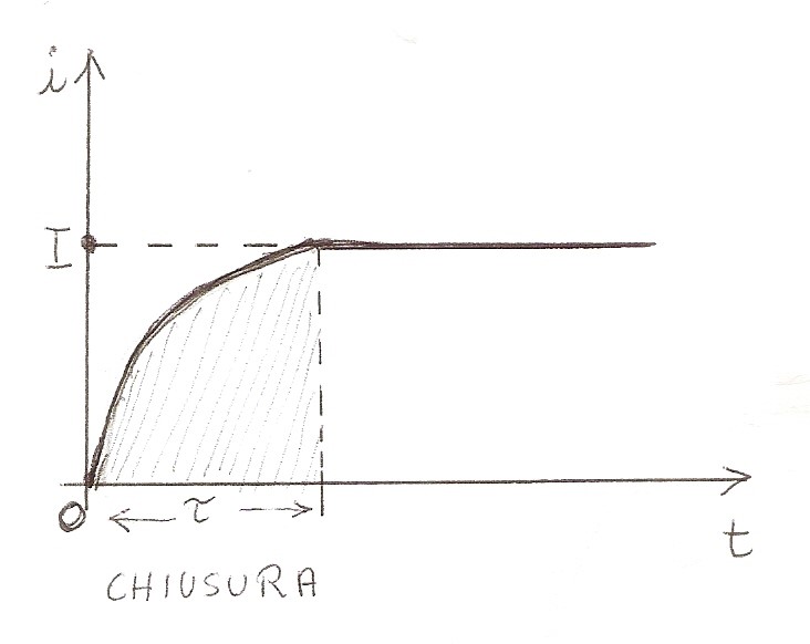 Sia dato il circuito di figura in cui abbiamo una pila, una resistenza ed un interruttore T. Alla chiusura di T (trattino rosso di figura) inizierà a circolare una corrente che non è immediatamente la I di figura ma una i (t) da determinarsi che, crescendo, andrà al suo valore I dopo un dato tempo.