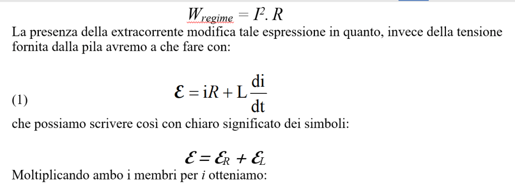 Serviamoci ora di quanto discusso a proposito della extracorrente di apertura nel caso di resistenza ed induttanza in serie, per fare delle considerazioni energetiche.