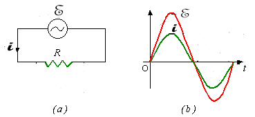 nella figura (b) il tratto rosso è il grafico della tensione e quello verde è della corrente.