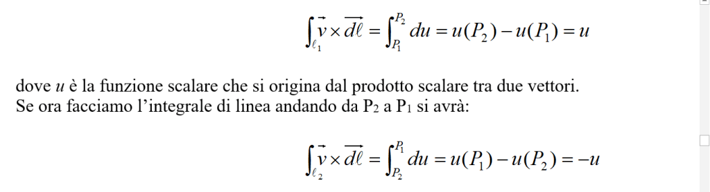 Ebbene, se l’integrale circuitale ora scritto dà per risultato zero, allora il campo vettoriale v in considerazione è conservativo.