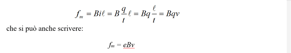 [si osservi che Fm = n.fm dove n è il numero degli elettroni che costituiscono la corrente].