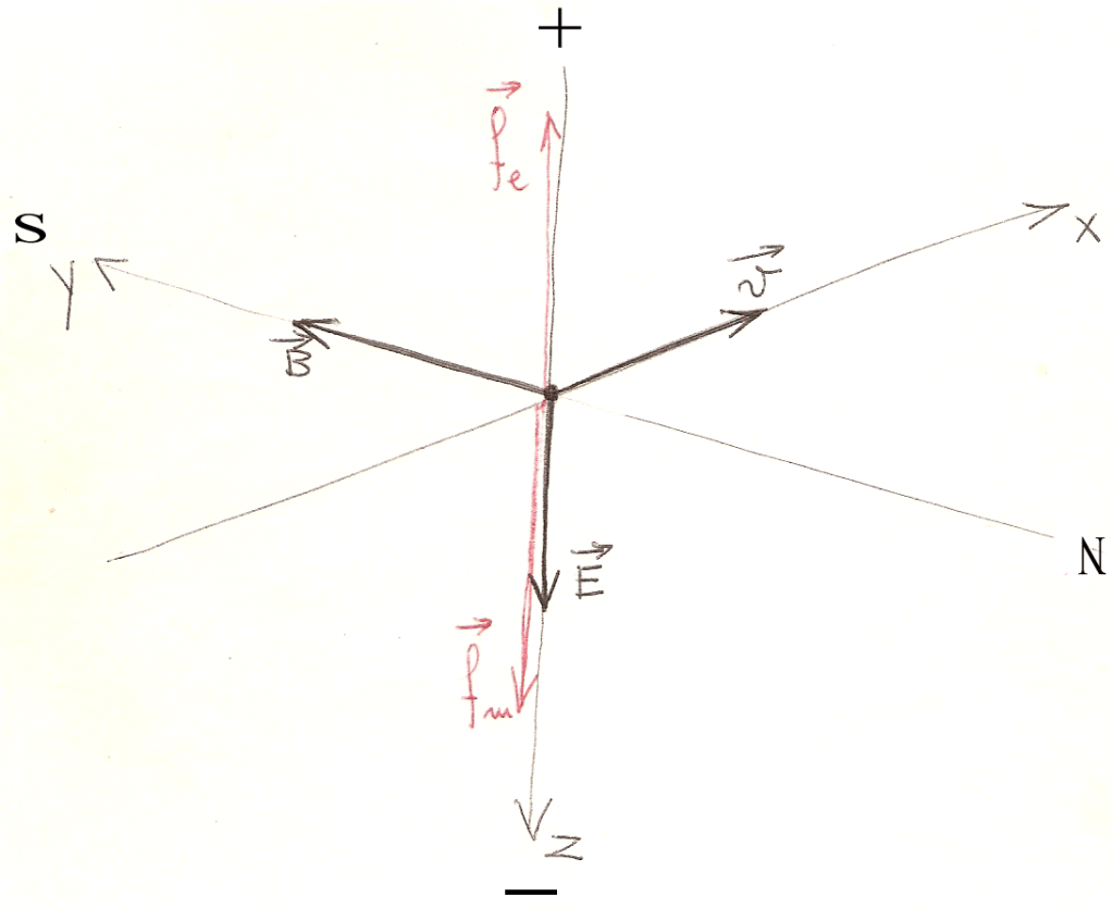 Facciamo agire un campo B ed un campo E, perpendicolari tra loro, su un elettrone che si muove con velocità v: