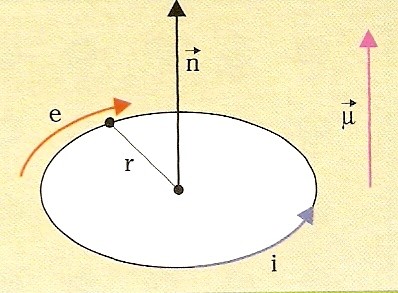 Il diamagnetismo fu scoperto da Faraday nel 1846 quando trovò che un pezzo di bismuto è respinto da ciascun polo di un magnete, la qual cosa indica che il campo magnetico esterno del magnete induce un dipolo magnetico nel bismuto con orientazione opposta a quella del campo. Si può comprendere qualitativamente questo effetto per mezzo della legge di Lenz (vedi oltre) ed introducendo il concetto del vettore magnetone di Bohr (μ) o momento magnetico orbitale dell’elettrone ed il concetto di spin (s)dell’elettrone. Un elettrone che ruota intorno ad un nucleo equivale, agli effetti magnetici, ad una corrente di verso opposto al moto della particella che percorre una spira uguale alla traiettoria descritta dall’elettrone (Lenz). L’elettrone, mentre ruota intorno al nucleo, ruota anche su se stesso (spin), e questa rotazione comporta un ulteriore contributo al magnetismo atomico chiamato momento magnetico di spin (μs).
