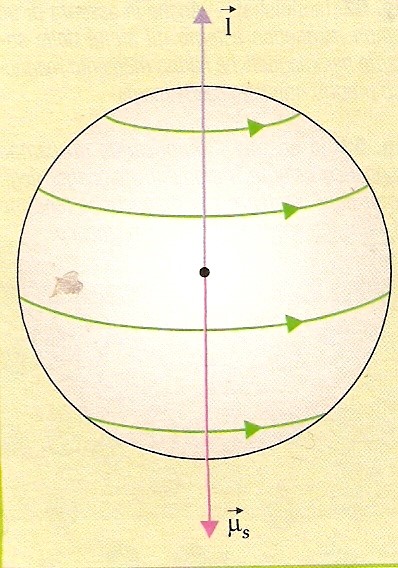 (Esercizio da svolgere dopo aver studiato la legge di Lenz) Nella figura seguente due cariche positive si muovono su orbite circolari con la stessa velocità ma in versi opposti. I loro momenti magnetici hanno orientazioni opposte e si elidono (È più semplice considerare cariche positive anche se, come ora visto, sono gli elettroni carichi negativamente che forniscono i momenti magnetici nella materia). Si consideri ora ciò che accade quando un campo magnetico esterno B è stabilito nella direzione perpendicolare al piano del foglio e nel verso entrante in esso. Secondo la legge di Lenz, verranno indotte correnti che si oppongono alla variazione del flusso di induzione magnetica. Se si suppone che il raggio della circonferenza non vari, la carica a sinistra verrà accelerata per aumentare il suo flusso di induzione magnetica uscente dal foglio e la carica a destra verrà rallentata per diminuire il suo flusso di induzione magnetica entrante nel foglio. In ogni caso, la variazione del momento magnetico delle cariche avrà un’orientazione uscente dal piano del foglio, opposta a quella del campo esterno.