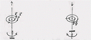 Questa prima ipotesi può essere formulata più precisamente nel modo seguente. Supponiamo di considerare un elettrone che ruoti intorno al nucleo su una determinata orbita; sia r il raggio dell’orbita che stiamo considerando e q = mv la quantità di moto dell’elettrone su questa orbita, di modo che il momento della quantità di moto, meglio, il momento angolare dell’elettrone rispetto al nucleo sarà p = mvr; ebbene, questo momento angolare non può assumere tutti i valori possibili, ma solo alcuni determinati , multipli interi di una data quantità elementare; vale cioè la relazione: