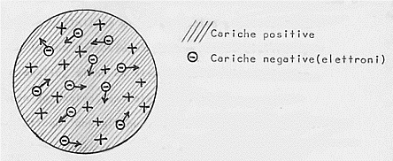 Già nel 1899, J. J. Thomson stava elaborando un qualche modello di atomo che rendesse conto dei fenomeni fisici osservati. Egli si rendeva conto che all’interno di un atomo doveva, in qualche modo, esservi della carica positiva. La presenza degli elettroni negativi nella materia doveva prevedere la presenza di un qualcosa di positivo che andasse a neutralizzare la carica di segno opposto. Ma su questa supposta carica positiva non si sapeva nulla. Fu Kelvin che nel 1901 suggerì che la carica positiva dovesse essere assegnata ad una massa omogenea e continua, da pensarsi come ordinariamente sono pensati i fluidi (una specie di massa gelatinosa a bassissima densità). Un atomo, allora, deve essere pensato come un continuo sferico di carica positiva dentro cui si trovano queste piccole masse che sono gli elettroni. Riguardo poi a come sono distribuiti gli elettroni nella gelatina positiva, dipende dal loro numero: se l’atomo ha un solo elettrone questo si dispone al centro della sfera; se gli elettroni sono più di uno, probabilmente (dice Kelvin), si disporranno in superfici sferiche concentriche con la sfera ed interne ad essa. Questi elettroni saranno, inoltre, probabilmente dotati di moto rotatorio intorno al centro della sfera.