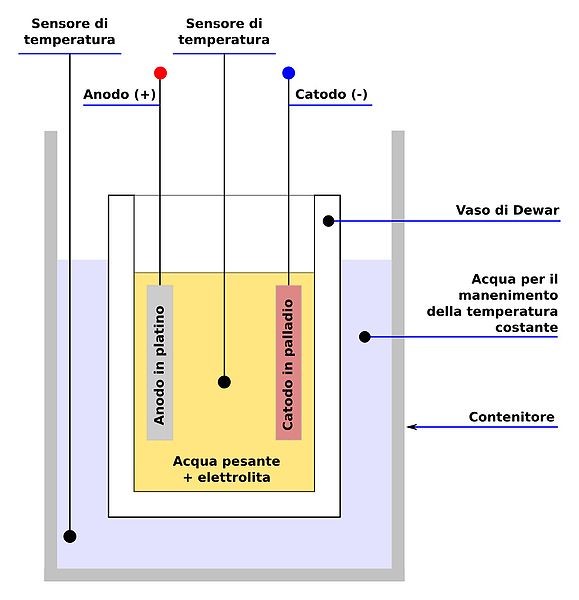 Nel 1989 Martin Fleischman e Stanley Pons riportarono in un articolo pubblicato a pagina 301 del volume 261 del “Journal of Electroanalytical Chemistry” che una notevole quantità di energia, non attribuibile ai normali meccanismi elettrochimici, si liberava in una cella elettrolitica avente un catodo di palladio e contenente una soluzione 0,1 molare di deuterossido di litio LiOD in acqua pesante D2O. Questo sovrappiù di energia ammontava a circa dieci joule per secondo (dieci watt) per centimetro cubo di palladio e veniva prodotto quando la concentrazione di deuterio nel palladio, misurata dal rapporto stechiometrico