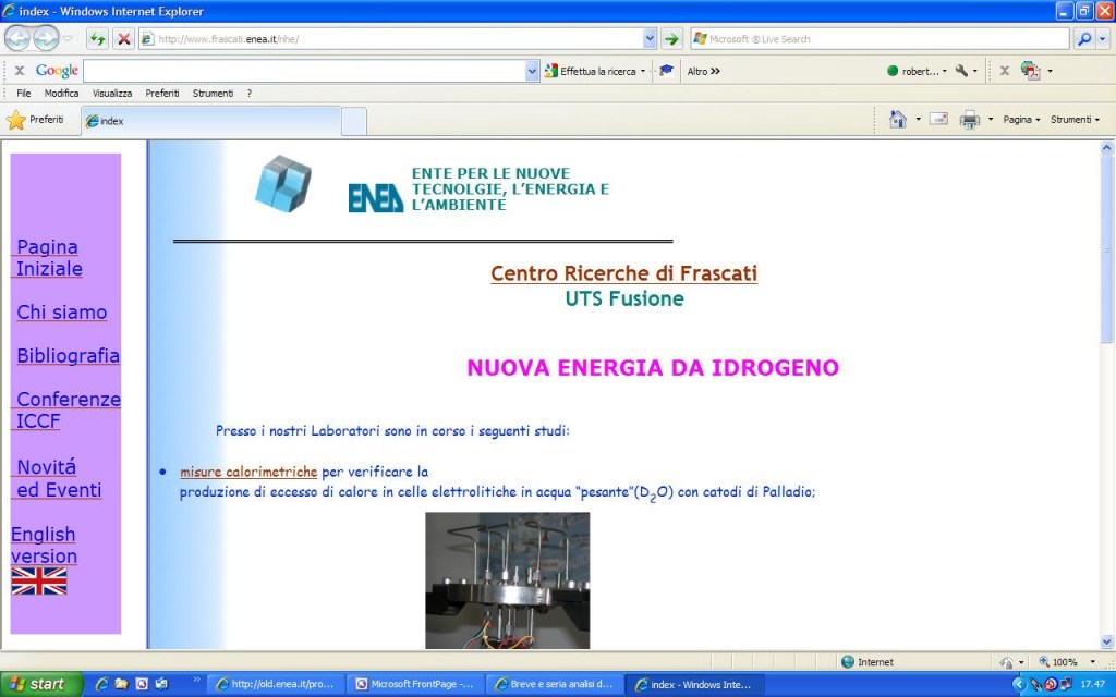 I risultati arrivano anche per quanto concerne lo studio della fusione fredda: durante il 2006 in ENEA si supera il 60% di riproducibilità nella produzione di eccesso di potenza e presso l’Istituto SRI si raggiunge il 75%.