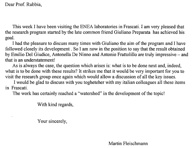Questa predizione ci fu subito chiara e fu formulata nel primo articolo apparso nel maggio 1989 sul Nuovo Cimento e nella relazione di Giuliano Preparata al Congresso di Salt Lake City nella primavera 1990.