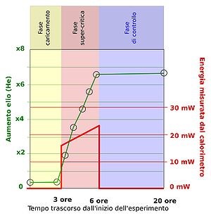 Quest’ultima predizione è stata confermata da molti ricercatori — Miles, Gozzi, Arata e altri — per cui la presenza di elio 4 commensurato all’energia prodotta è diventata la prova del carattere nucleare del fenomeno.