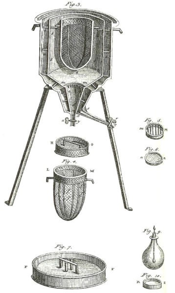 Il calorimetro di Lavoiseir-Laplace funziona misurando la quantità di ghiaccio che un corpo è capace di sciogliere cedendo calore sino a raffreddarsi a 0° C . Come mostrato in figura, è costituito da tre recipienti concentrici: in quello più esterno si mette del ghiaccio fatto a pezzi, che serve da isolante per impedire cioè che il calore esterno faccia fondere il ghiaccio del secondo recipiente; quest’ultimo, quello intermedio, è è il recipiente che serve alla misura calorimetrica mediante la quantità di ghiaccio in esso contenuto che fonde per il contatto con il calore che proviene da ciò che si vuole studiare posto nel terzo recipiente, quello più interno. Il tubicino laterale in alto e in basso a destra ha la funzione di far defluire l’acqua che si forma nel primo recipiente per il suo contatto con l’ambiente esterno; il rubinetto in basso al centro serve per raccogliere l’acqua prodotta dalla fusione del ghiaccio nel secondo recipiente in un cilindro graduato.