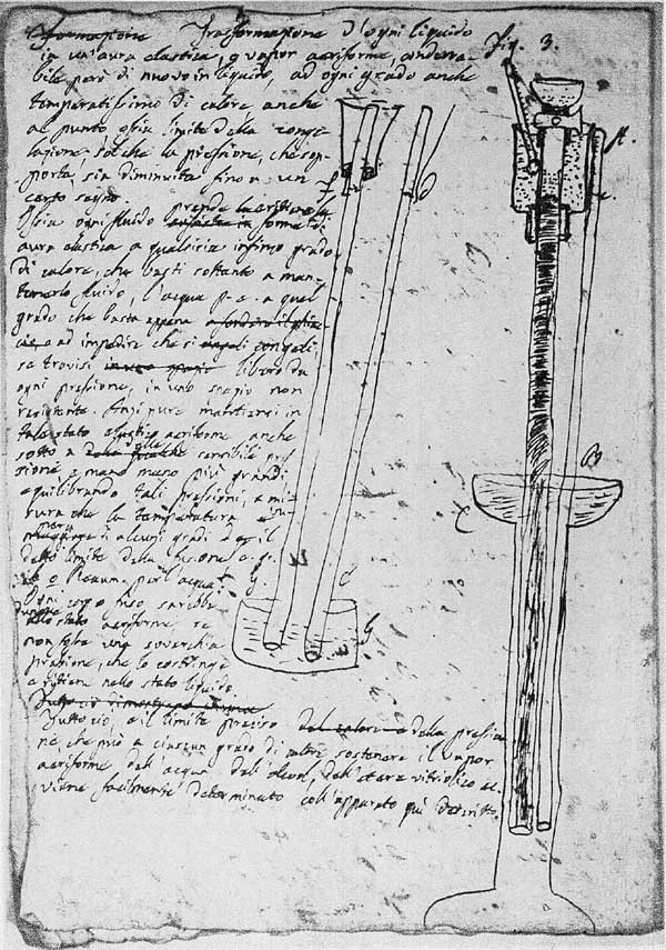 Pagina autografa di Volta in cui si studiano i vapori saturi a differenti temperature. Da http://ppp.unipv.it/mostra/Pagine/Frame%20S3/FrameS36.htm