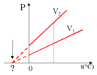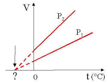 Ogni retta è relativa ad un valore diverso di volume. Spostandosi su una retta ci si trova su una isocora. E’ da notare, anche qui, che l’arbitrarietà dello zero della temperatura centigrada fa sì che le rette vadano a valori negativi di temperatura. E’ proprio l’osservazione di quelle rette che sembrano convergere verso un punto che è più o meno localizzato a – 273°C a far pensare ad un valore speciale che quella temperatura deve avere e che fece dire ad Amontons che vi fosse uno zero assoluto. Non è pensabile andare oltre nell’estrapolazione – 273 perché avremmo volumi negativi che non sappiamo cosa sono.