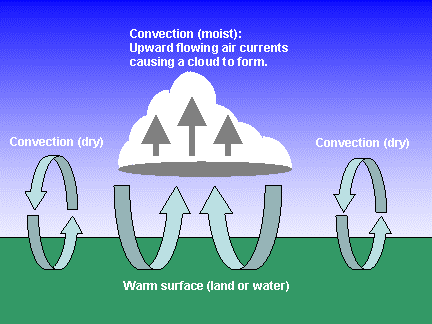 Aria riscaldata dal suolo, se contenente vapor d’acqua, sollevandosi si raffredda originando le nuvole.
