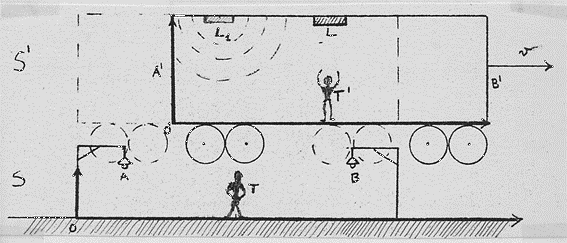 “Dopo dieci anni di riflessione, un siffatto principio risultò da un paradosso nel quale mi ero imbattuto all’età di 16 anni; se io potessi seguire un raggio di luce a velocità c (la velocità della luce nel vuoto), il raggio di luce mi apparirebbe come un campo elettromagnetico oscillante nello spazio, in stato di quiete. Ma nulla del genere sembra sussistere sulla base dell’esperienza o delle equazioni di Maxwell. Fin dal principio mi sembrò intuitivamente chiaro che, dal punto di vista di un tale ipotetico osservatore, tutto debba accadere secondo le stesse leggi che valgono per un osservatore fermo rispetto alla Terra. Altrimenti, come farebbe il primo osservatore a sapere, cioè come potrebbe stabilire, di essere in uno stato di rapidissimo moto uniforme ?“