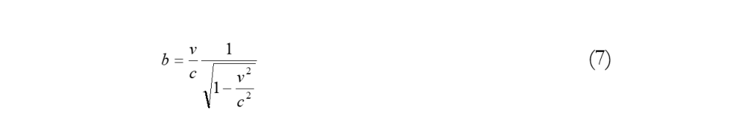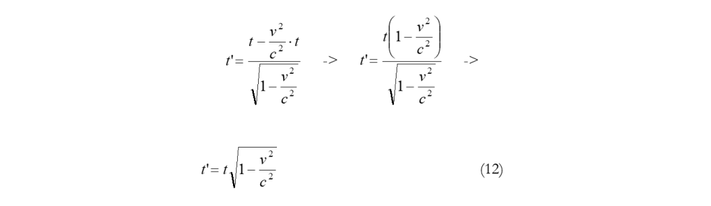 Δx = Δx’ -> 1/a = a(1 – v2/c2) -> a2 = 1/(1 – v2/c2) -> (6)