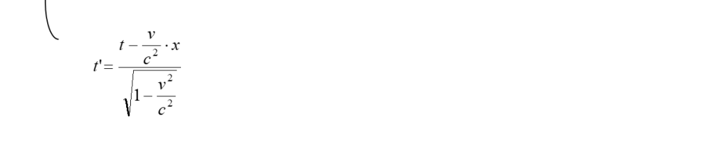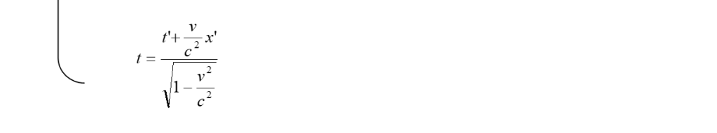 Analogo ragionamento si può fare per i tempi. Supponiamo di avere un orologio che nel sistema S in quiete dia il tempo t, mentre (lo stesso orologio) nel sistema S’ in moto dia il tempo t’. Poniamo quest’orologio nell’origine delle coordinate di S’ e vediamo che tempo fornisce in S. La quarta delle trasformazioni (8) ci dice che: