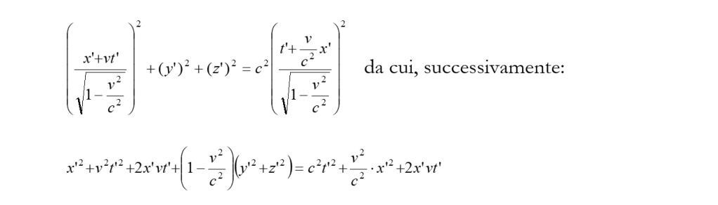 Ma, per il principio di relatività, questa e l’altra ‘istantanea’ dovranno essere identiche; l’espressione (4) dovrà cioè essere uguale all’espressione (5):