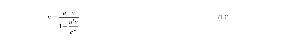 Si noti che per velocità u’ e v molto piccole rispetto a c, il termine u’v/c2, che si trova al denominatore, può essere trascurato, di modo che si ottiene l’equazione classica di addizione delle velocità (quella di Galileo):