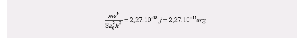 e questa è la velocità tangenziale dell’elettrone per varie orbite (al variare di n) e per vari atomi (al variare di Z). se si fa un rapido calcolo per l’atomo di idrogeno (Z = 1) non eccitato (con l’elettrone nell’orbita n = 1)si trova che il raggio atomico vale R = 0,53 Å, mentre la velocità dell’elettrone intorno al nucleo vale v = 2,182.108 cm/s. Osservando a questo punto che la velocità angolare w è data dalla velocità tangenziale v divisa per il raggio R, si trova: