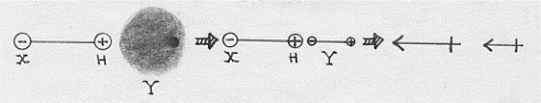 ora l’atomo Y ha altri atomi di idrogeno a disposizione e, per la sua elettronegatività, risulterà in qualche modo ionizzato negativamente avendo prelevato, con lo stesso meccanismo di X, un elettrone a qualche altro atomo di idrogeno.
