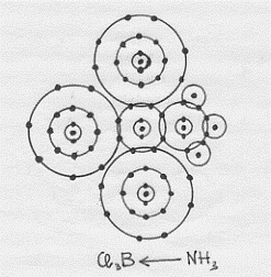 Si può quindi stabilire un legame dativo tra le due molecole per formare BCl3NH3 (che scritto secondo la convenzione fatta è: Cl3B<——NH3) che può essere rappresentato come in figura: