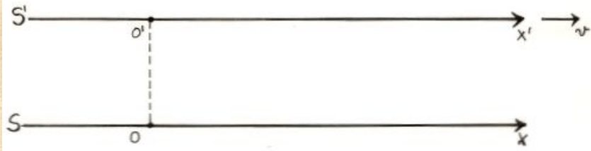 La lunghezza dell’asta misurata in S’ sia ℓ’ = x’2 – x’1. Poiché gli estremi di quest’asta sono ivi misurati simultaneamente, si avrà t’1 = t’2 (dove t’1 rappresenta l’istante in cui un estremo del regolo è fatto coincidere con un estremo dell’asta e t’2 l’istante in cui l’altro estremo del regolo è fatto coincidere con l’altro estremo dell’asta).