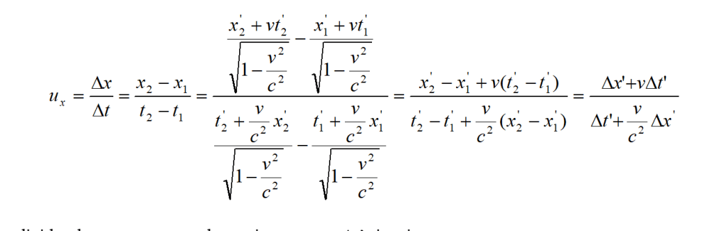 dividendo numeratore e denominatore per Δt’ si ottiene: