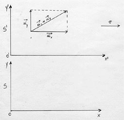 Il nostro oggetto, in S’, ha allora, una velocità data dalla somma vettoriale di u’x e di u’y, data cioè da u’x + u’y, con ovvio significato dei simboli.