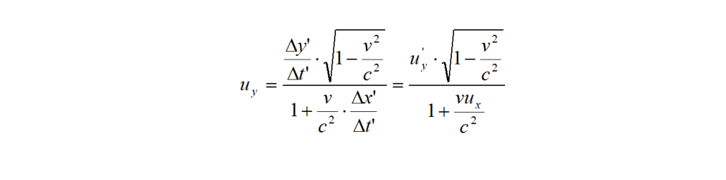 Sappiamo che y = y’ e quindi che Δy = Δy’. Inoltre Δt e Δt’ hanno lo stesso valore che abbiamo in precedenza trovato. Ed allora, per l’osservatore in S, risulterà: