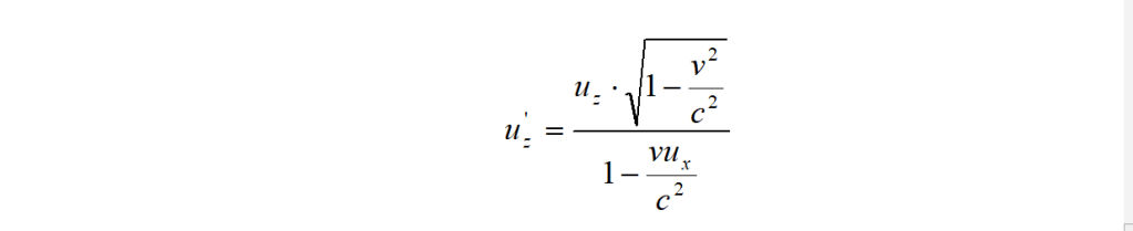 Facendo un conto uguale a quello ora fatto, ricordando che z = z’ (e quindi Δz = Δz’) e che valgono le stesse relazioni per Δt e Δt’, si può facilmente trovare la componente u’z della velocità di un oggetto comunque diretta rispetto agli assi x’, y’, z’.