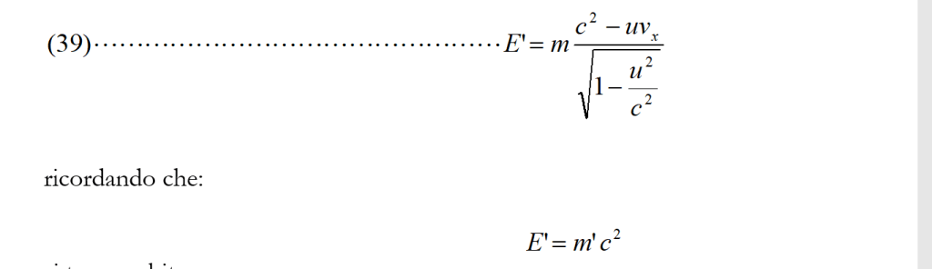 che la variazione infinitesima dell’energia cinetica (dEc) è uguale al lavoro infinitesimo (Fx.dx) e che m0c2 è una costante, si ha: