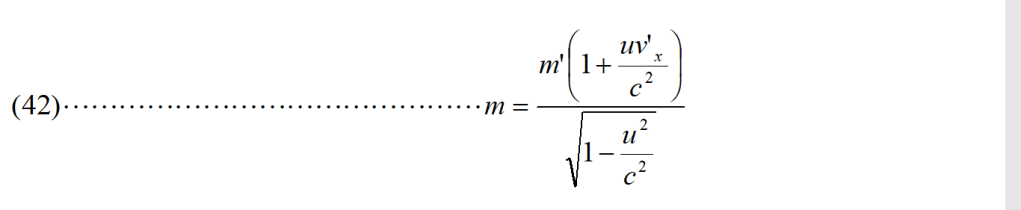 E la (41) e (42) sono le equazioni di trasformazione per la massa da noi cercate.