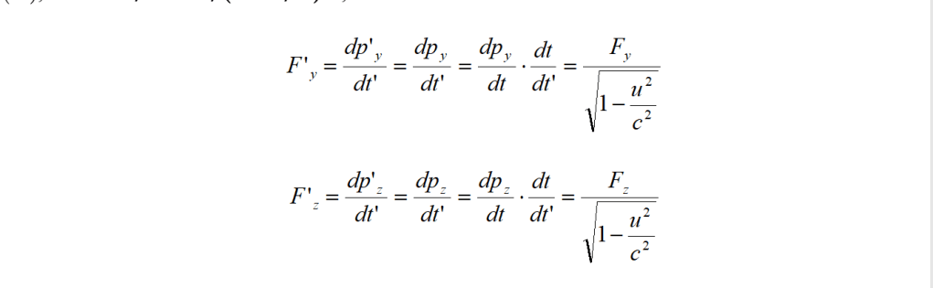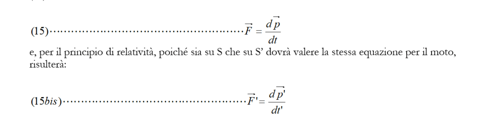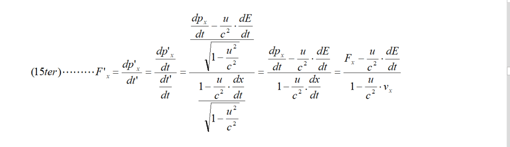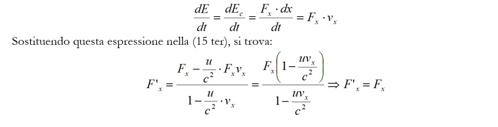 Per quel che riguarda le equazioni di trasformazione della forza, basta ricordare la definizione (15):