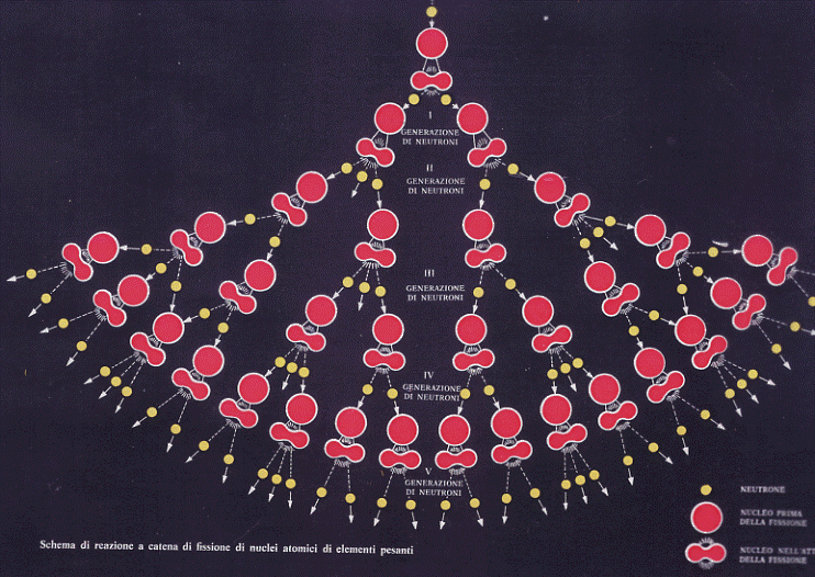 questi due elementi, oltre ad essere importanti perché fissili, lo sono anche perché, a ciascuna fissione, si accompagna l’emissione di 1, 2 o 3 nuovi neutroni che vanno a realizzare nuovi processi di fissione in un processo a catena che