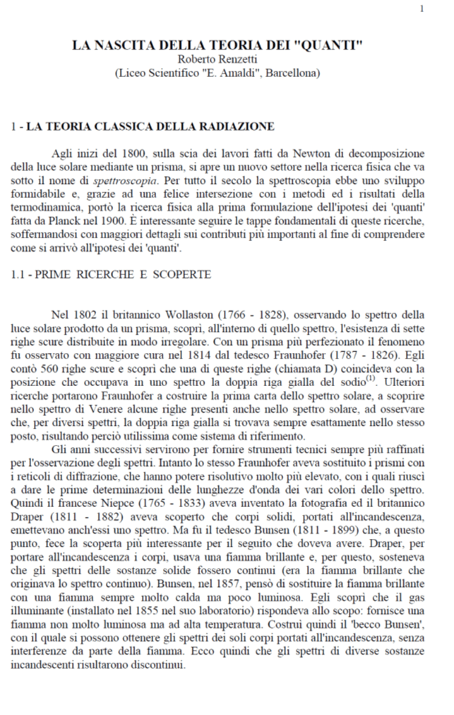 LA NASCITA DELLA TEORIA DEI “QUANTI”