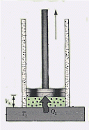 (5) Questo ciclicamente vuol dire che ci si confronta, pur in un discorso teorico, con la realtà. Per pura speculazione si può pensare ad una macchina costituita da un cilindro infinito ed un pistone. Se si immette un gas nel cilindro e si scalda indefinitamente, il pistone si muoverà per la dilatazione continua del gas. Se si continua a scaldare non vi è chi fermi il pistone. Poiché il volume del gas racchiuso nel cilindro cresce sempre si avrà un lavoro sempre positivo. Quindi non vi è necessità di ciclico e neppure di due sorgenti (come vedremo). Il fatto è che le macchine non possono essere infinite. E se sono finite, ad un elevarsi del pistone deve poi corrispondere un abbassarsi del medesimo percorrendo la via a ritroso. Ma, così facendo occorre fare un lavoro negativo e quindi serve una seconda sorgente ed in definitiva una trasformazione ciclica.