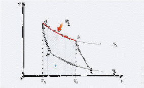 ed è facile rendersi conto che questo prodotto rappresenta proprio l’area tratteggiata in figura III. Si deve osservare che, in pratica, quando abbiamo una trasformazione non chiusa, il lavoro è sempre l’area sottesa tra la curva che rappresenta la trasformazione, i segmenti di perpendicolare all’asse delle ascisse e lo stesso asse delle ascisse. Quando si ha una trasformazione ciclica, accade che, andando da un dato A ad un dato B (ad esempio aumentando il volume), per tornare da B ad A è necessario passare per una qualche trasformazione che riduca tale volume con la conseguenza di sottrarre l’area sottesa da questa ultima trasformazione di ritorno da quella precedente. Riferendoci allora a figura IV si ha che il lavoro L fatto nel ciclo disegnato è dato da: