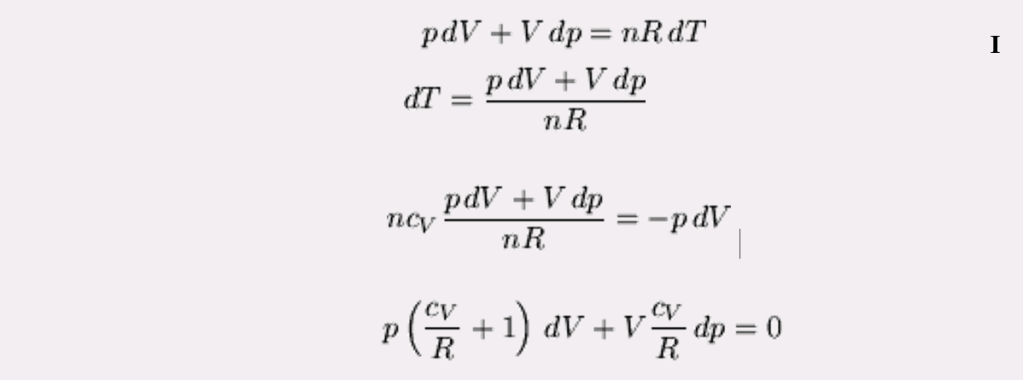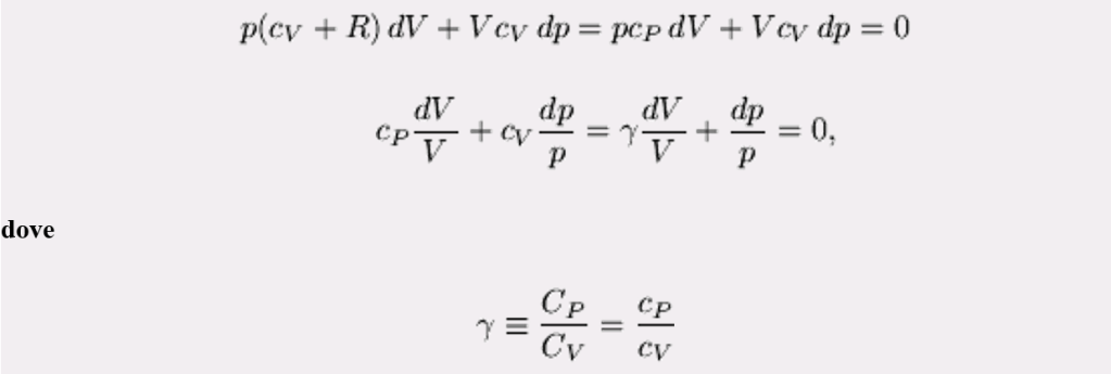 si trova a partire dal Primo Principio della Termodinamica (I) sostituendo il risultato nell’espressione differenziale della legge dei gas perfetti (II). Successivamente si trova: