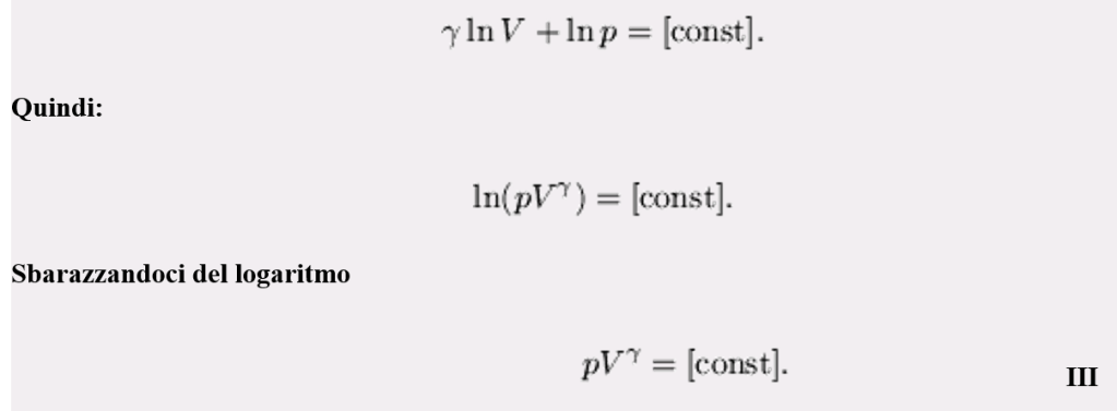 Se si vuole poi dare una adiabatica mediante la temperatura T ed il volume V, si parte dalla legge dei gas perfetti nella forma: