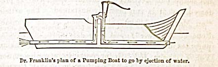 Altri progetti di battello a vapore vennero realizzati anche da Franklin che studiò una propulsione sia “a getto d’acqua” che “a getto d’aria” come mostrano le seguenti due figure: