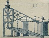 Si noti che i due bilancieri, che sostituivano quello disposto in alto, sono situati in basso, oscillando lateralmente al cilindro centrale