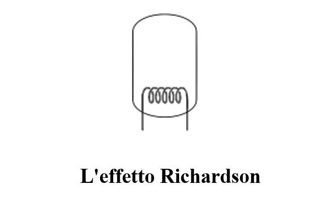 dove isè la corrente emessa, T la temperatura assoluta, S la superficie che emette, A una costante indipendente dal metallo che emette, b una costante dipendente dalla natura del metallo che emette (direttamente proporzionale al lavoro di estrazione degli elettroni dal metallo diviso per la costante di Boltzmann V.e/k). Questa espressione era stata ricavata da Richardson a partire dalla semplice ipotesi che gli elettroni, liberamente in moto all’interno del metallo riscaldato, venivano fuori da esso quando arrivavano sulla superficie con un’energia, dipendente dalla componente della loro velocità normale alla superficie medesima, maggiore del lavoro necessario per estrarli da essa (funzione lavoro).