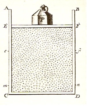 Figura tratta da Hydrodinamica (1738) di Daniel Bernouilli. Si illustra la Legge di Boyle nell’ipotesi di materia costituita da corpuscoli.